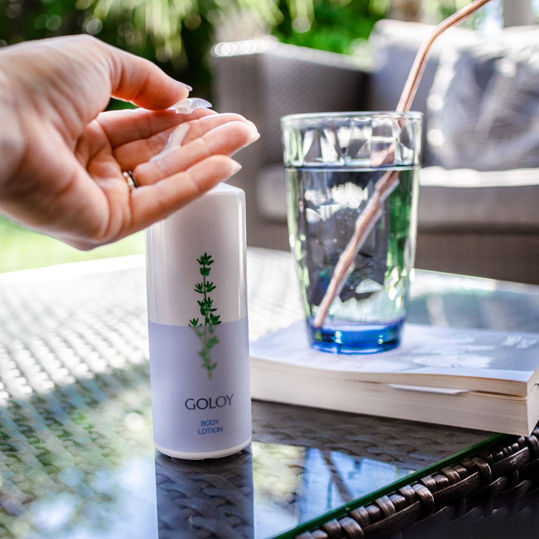 | Einsatz | Die GOLOY Body Lotion kann täglich angewendet werden. Für optimale Ergebnisse massieren sie nach dem Duschen oder Baden die Lotion am ganzen Körper sanft in die Haut ein. Durch die leichte Textur eignet sich die Lotion auch hervorragend als After Sun, um die Haut nach dem Sonnenbaden zu beruhigen und mit Feuchtigkeit zu versorgen. Geniessen Sie das erfrischende und pflegende Gefühl, dass die GOLOY Body Lotion Ihrer Haut schenkt. |